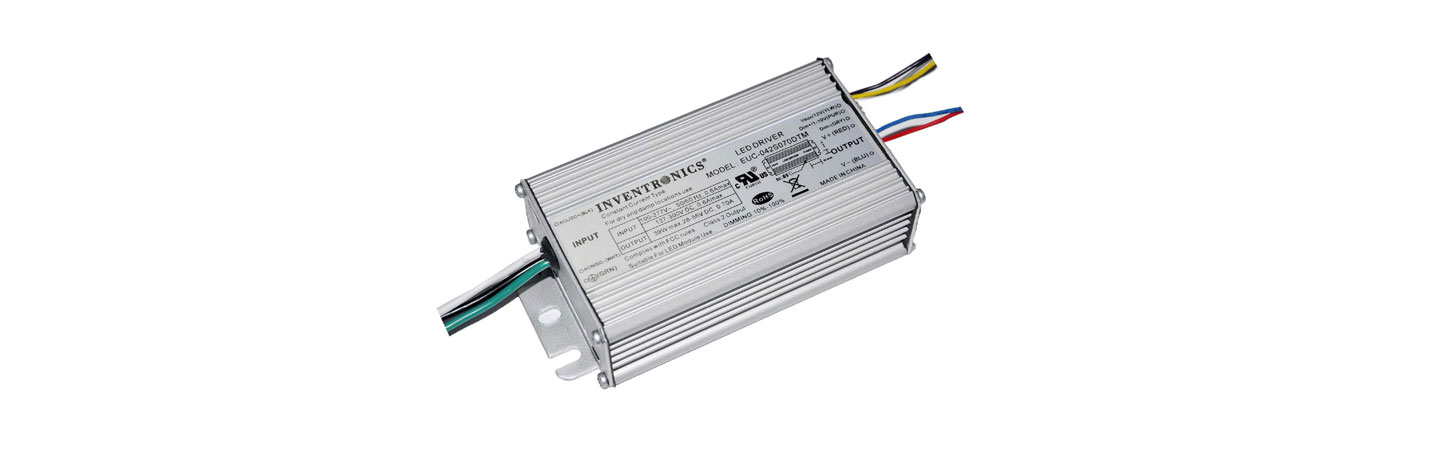 Inventronics announces the release of a broad array of 42W constant-current LED drivers for applications including low bay, tunnel lighting and signage. The EUC-042SxxxDTM series offers 0-10V dimming and the EUC-042SSxxxSTM series offers non-dimming models certified to UL, CE & FCC. Corresponding “VDE” series EUC-042SxxxDVM and EUC-042SxxxSVM are certified to ENEC, TUV, CB, CE & CCC. Each series includes models with 4 different maximum output currents ranging from 350 mA to 1400 mA. All these drivers operate over 90-305 Vac input with excellent power factor correction (0.98 at 120V and 0.95 at 220V), have 0-10V dimming to a 10% minimum level, and provide up to 200 mA of 12V auxiliary output power—enough for most sensors and controllers.