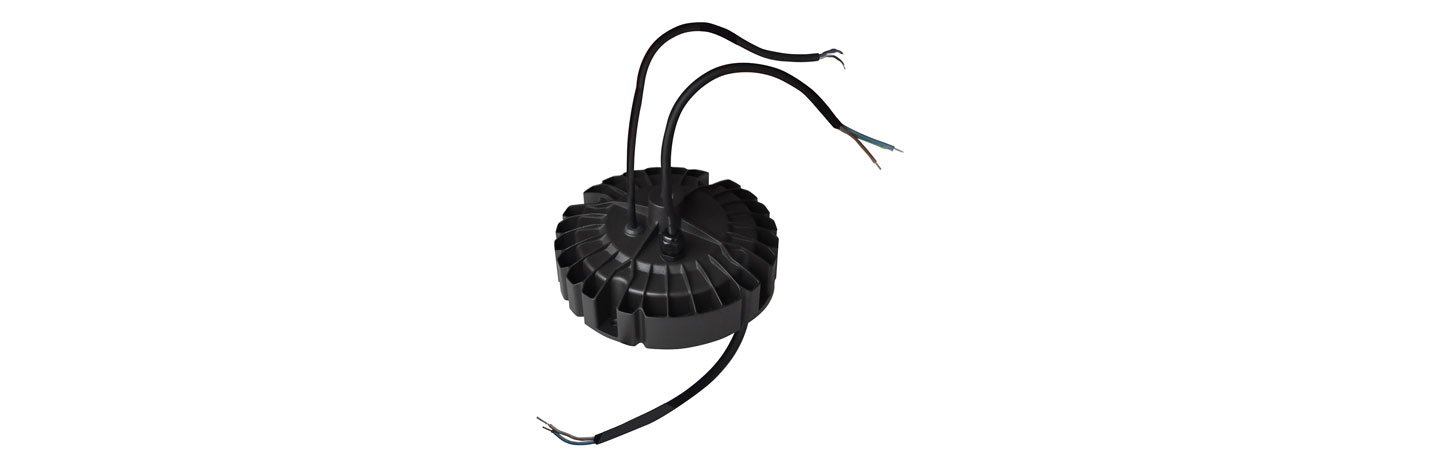 The EUR family of drivers offers more design versatility with adjustable output currents through programmability or potentiometer and 0-10V/PWM dimming as well as non-dimming versions, and can be ordered for hook or loop mounting to easily attach to the top of the light fixture. They can also be ordered in three different colors: white, silver or black to give your fixture a sleeker and more streamlined appearance. The rugged, round metal case offers durability that makes it suitable for hazardous indoor and outdoor applications such as factory, warehouse and sports arena lighting.