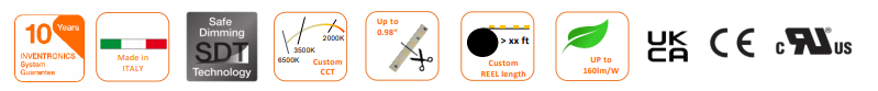 - Color uniformity better than 2 SDCM* on the entire LED strip and between strips*