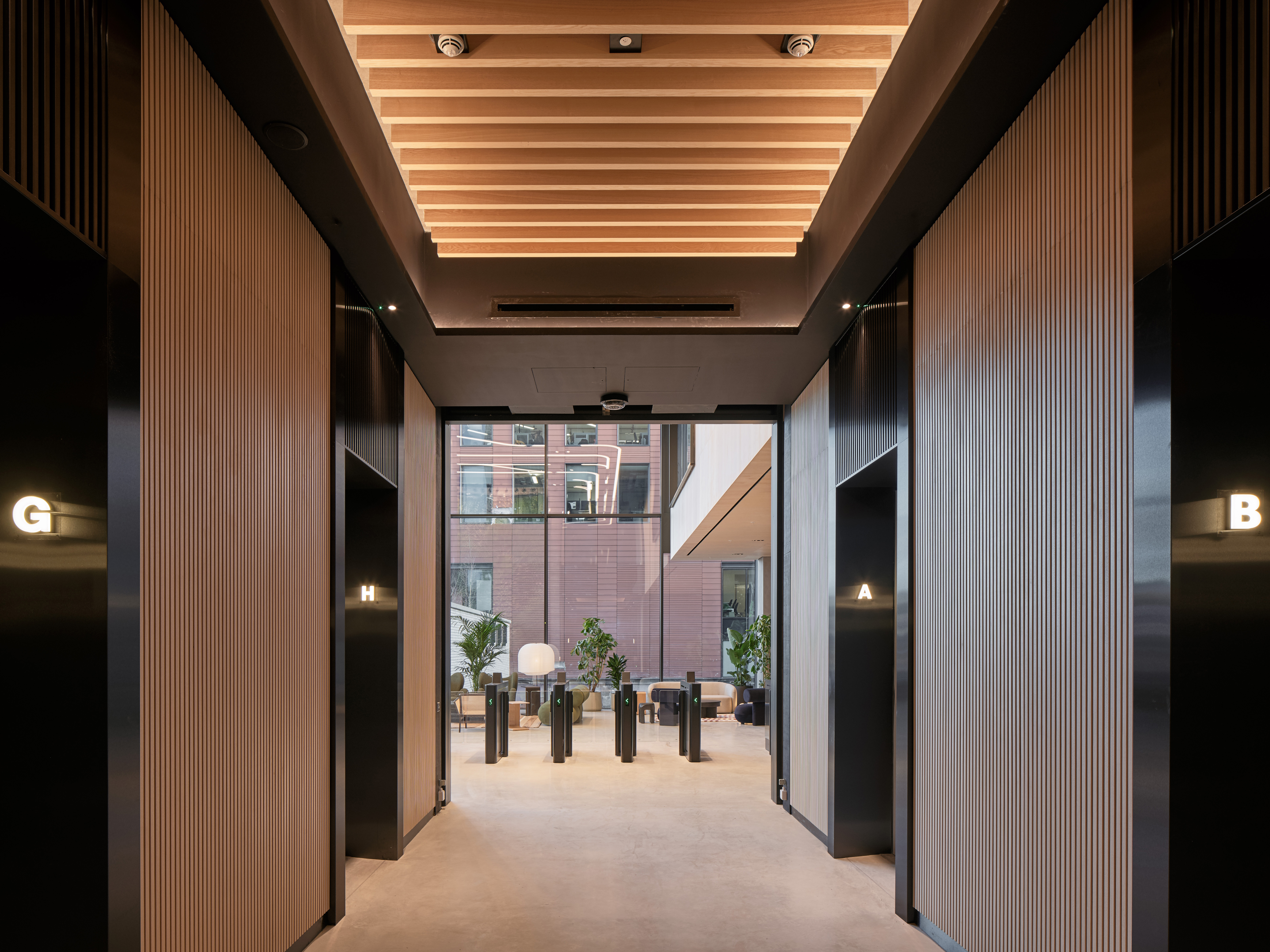 - Linear lighting within entrance canopies