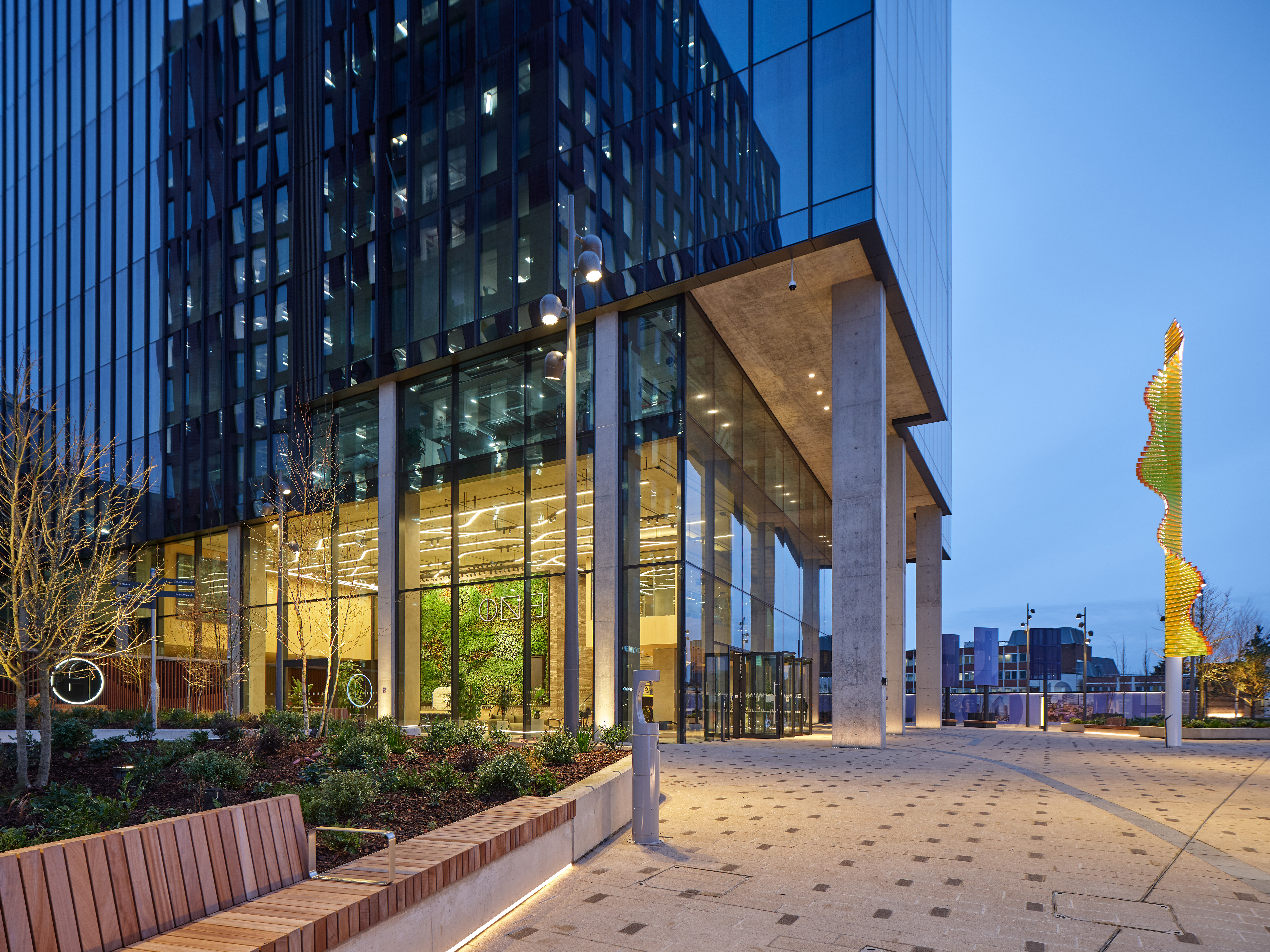 Reading Station Hill is a landmark mixed-use development in Reading that connects the central railway station with the town center through a newly created public realm. Built on the site of the former Friars Walk shopping center and surrounding transport facilities, the project transforms a previously underused area into a vibrant destination for residents, commuters, and businesses. The development introduces modern office buildings, residential towers, and landscaped public spaces that guide visitors from the station into the city center. At the heart of the project stands One Station Hill, the tallest building in Reading and a focal point of the redevelopment.